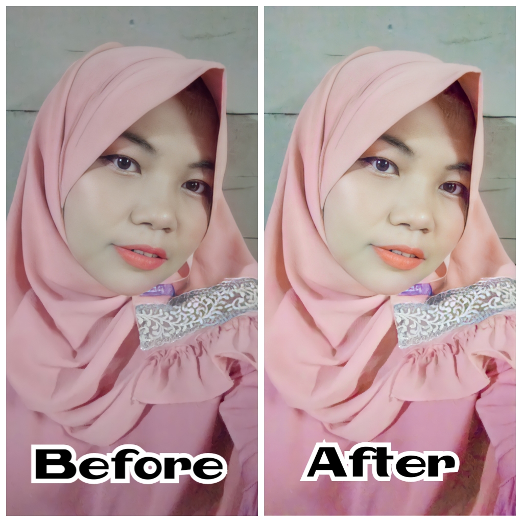 Tuh hasilnya kelihatan kan. Foto sebelah kanan itu setelah 2x proses enhance.