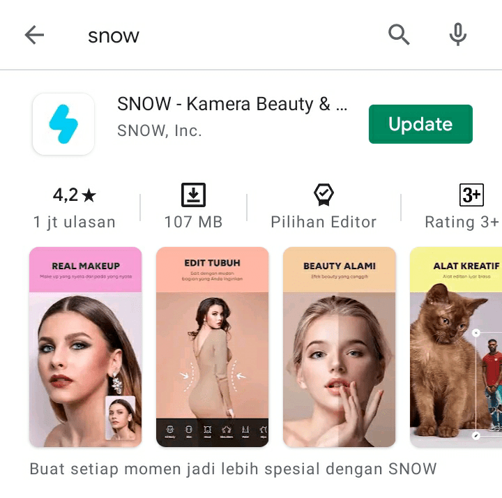 Langsung saja download aplikasi snow di playstore. Lalu pilih filter. Disini saya menggunakan filter kategori selfie yaitu filter pure. Lalu foto seperti biasa.